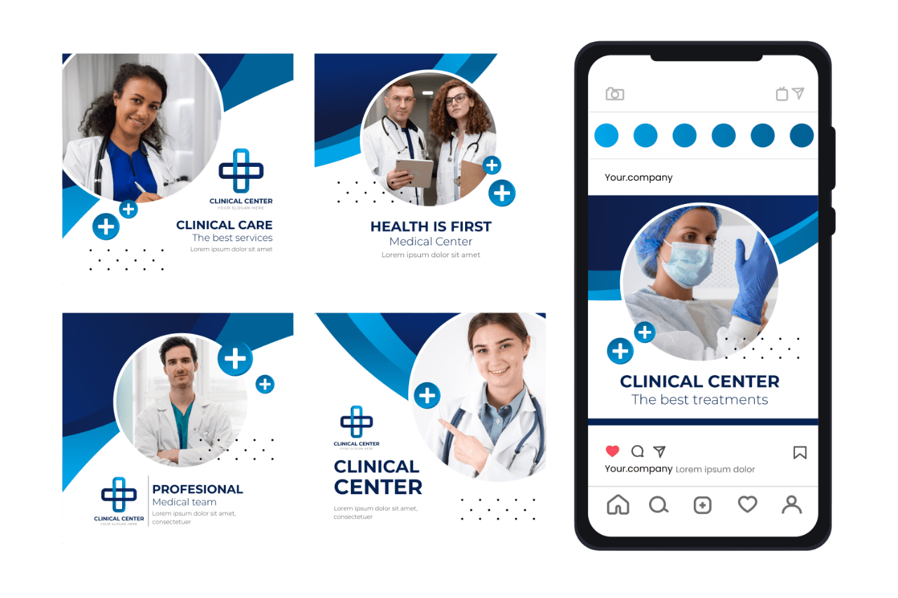 Designers e redatores com experiência no setor de saúde, respeitando normas éticas e linguagem adequada a cada especialidade.